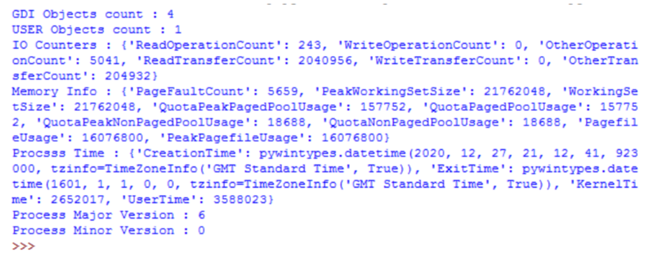 2. dict = GetProcessIoCounters(hProcess)