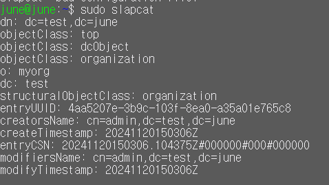 sudo slapcat을 통해 확인하면 제대로 설정된 것 같다.